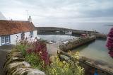 Scenic seaside village in Scotland on low tide and under a cloudy afternoon