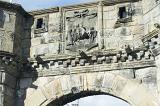 Green grass in foreground of outer wall for the old Saint Andrews Cathedral in Scotland. Includes copy space.