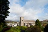Covered front entrance to a small traditional whitewashed picturesque cottage in Hawkshead, a popular tourist destination in the Lake District