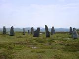 Stormy seascape with breaking white waves and a distant rainbow off the Isle of Harris