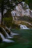 Beautiful Attraction of Chinese Waterfalls Surrounded with Green Trees.