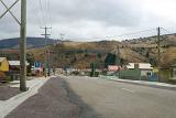 Wooden boardwalk on the overland track, Tasmania, meandering through hummocks of button grass towards distant mountain peaks in a scenic landscape