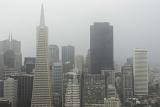 Twin Peaks, two hills with the second highest elevation in the centre of the city in San Francisco in clouds on a rainy day
