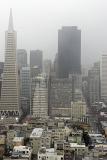 San Francisco skyline and cityscape on a blue sky hazy day showing the modern architecture and skyscrapers of the CBD
